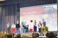 Далее состоялась церемония награждения педагогов за весомый вклад в развитие системы образования. Среди награждённых был и педагог нашего коллектива, учитель начальных классов Муртазина Феня Салиховна. Она награждена почетной грамотой Министерства Образования и Науки Республики Татарстан.