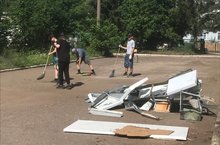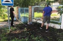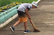7В продолжает наводить порядок на территории школы,метём тротуар, пропалываем газон, на прошлой неделе разнесли по кабинетам 330 стульев, 45 парт, промыли третий этаж.