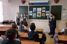Патриотик тәрбия айлыгы кысаларында 9 нчы Б сыйныфында Бөек Ватан сугышы каһарманнарына багышланган дәрес үтте.Укучылар данлыклы якташларыбызның батырлыклары турында чыгыш ясадылар. Аларның биографияләреннән кызыклы фактлар сөйләделәр. Советлар Союзы Геройлары Н.Ф.Кайманов, И.П.Болодурин, И.С.Башкиров, Дан орденының тулы кавалеры Р.Х.Гайнуллиннар- безнең халкыбызның горурлыгы.Татар халкының герой- шагыйре М.Җәлилнең әсирлектә иҗат иткән данлыклы “Моабит дәфтәрләре”ннән шигырьләр укыдылар.