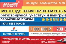 "Большая перемена" конкурс для тех кто готов меняться и менять мир. Здесь рулят не оценки, а способность нестандартно мыслить. Конкурс – это не только шанс выиграть крутые призы, но и возможность определиться с будущей профессии. А призы более чем крутые - это оплата обучения, путевки в Артек, путешествие мечты через всю Россию, баллы для поступления в вузы и многое другое. Кроме того, ученики 20 школ получит финансовую поддержку! Можно участвовать в испытаниях по нескольким разделам: журналистика, спорт, экология, творчество и патриотическая направленность. А также не забывать что проходят крутые челленджи, конкурсы и активности для всех: неважно сколько тебе лет и в каком классе ты учишься. Участвуй, общайся с друзьями и звёздами наставниками, побеждай!