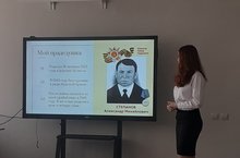После пленарной части ученикам дали возможность выступить со своими исследовательскими статьями на различные военные темы. От СОШ № 26 выступила ученица 8 А класса Степанова Алёна, рассказавшая о трудной жизни и ратных подвигах своего прадедушки.