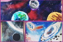 "Мы дети космоса", эта тема успешно была реализована учащимися 6-7классов на уроке ИЗО. Ребята показали высокий творческий потенциал.