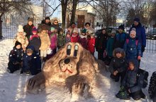 Вот такого красавца - символ наступающего 2018 года - собаку, по кличке Шоколадка (так назвали его дети), слепили на конкурс снежных фигур родители 2А класса.