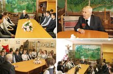 Сегодня в школьном музее прошла встреча учащихся 8А класса с ветераном педагогического труда Аровым В.И. Василий Иванович рассказал о тяжелом военном детстве, о лишениях и трудностях военного и послевоенного времени, о вере в скорую Победу. Ребята внимательно слушали свидетеля тех лет, узнали много нового о жизни детей войны. И конечно, Василий Иванович рассказал о работе в школе, о своих учениках и коллегах, о строительстве Нижнекамска. Встреча завершилась вопросами учащихся.