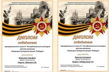 Поздравляем победителей муниципального конкурса детских рисунков - "Правнуки ветеранов рисуют Победу", ученика 1А класса Морозова Тимофея (кл. рук. Абанина С.М.) и ученицу 5Г класса Франчук Катю (кл. рук. Габидуллина Т.О.). Молодцы!!! Работы победителей направляются в г. Казань для дальнейшего участия в конкурсе. Пожелаем им дальнейших побед!!!