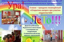 4 июня в пришкольном лагере "Здоровячок" провели праздник посвящённый открытию лагеря совместно со студентами КАИ. Было много игр, песен, стихов и конкурсов. Спасибо организаторам за весёлый праздник и подарки.