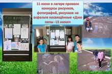 11 июня в пришкольном лагере был "День папы". Ребята участвовали в конкурсах рисунков и фотографий "Мой папа самый лучший" и рисовали на асфальте своих пап.