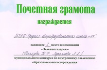 Конкурс по внутреннему озеленению проходил с 24 по 28 февраля 2014 года. Наша школа заняла I почетное место в номинации "Зеленая галерея".