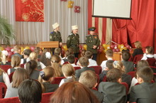 Сегодня, 25 февраля, в актовом зале школы состоялась встреча учащихся 2-4 классов с членами городского казачьего общества "Станица Нижнекамская" 5-го Татарстанского отдела Оренбургского казачьего войска Союза казаков России. Гости рассказали об истории казачества, о казаках-героях, показали вооружение казаков и приемы владения оружием. В конце встречи казаки ответили на вопросы учащихся.