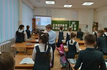 4А и 4Б классы во главе своих классных руководителей Абаниной С.М и Панковой Л.Е участвовали в выносе флага. -