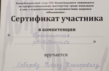 Сегодня стали известны результаты Республиканского VII Национального чемпионата по профессиональному мастерству «Абилимпикс». Мы поздравляем ученика 8А класса Сабирова Риназа (педагог Сулейманкина О.П.) с сертификатом участника в компетенции «Промышленная роботехника». Риназ, молодец!