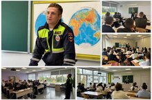 Сегодня в нашей школе прошла встреча с Сайфуллиным Ильсафом Искандеровичем ИДПС ОРДПС ГИБДД УМВД России по Нижнекамскому району, младшеи лейтенантом полиции. В целях предупреждения дорожно-транспортного травматизма, сотрудник ГИББД провёл профилактическое мероприятие «Правила дорожные соблюдай!». Главная цель таких уроков — это закрепление знаний, умений и навыков безопасного поведения детей на улице и в общественном транспорте, которые они получили в процессе обучения в школе. Школьникам были разъяснены правила безопасного поведения вблизи проезжей части, наиболее часто встречающиеся опасные «дорожные ловушки». При этом детям напомнили, что прежде, чем начать движение, необходимо убедиться в отсутствии транспорта и только после этого переходить проезжую часть. Кроме этого, инспектор ГИБДД рассказал ученикам, что такое безопасный маршрут и для чего нужны световозвращающие элементы на одежде и, как они помогают пешеходам в тёмное время суток. В завершение уроков, педагоги образовательного учреждения поблагодарили автоинспектора за интересное и полезное занятие, а школьники пообещали быть внимательными на дороге и всегда соблюдать Правила дорожного движения.