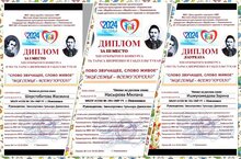 Поздравляем учащихся 1А класса Шерстобитову Жасмин с дипломом за 1 место, Насырову Милану с дипломом за 3 место, Ишмухамедову Зарину с дипломом лауреата и талантливого педагога Зиннатуллину Гульнару Дилюсовну с победителями и призерами XIII Открытого конкурса в честь Тараса Шевченко и Габдуллы Тукая «Слово звучащее, слово живое», «Моя семья – всему начало»! Молодцы! Так держать! Школа гордится вашими успехами!
