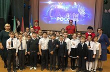 Ребята, вступая в ряды «Орлят России», произнесли клятву, получили значки и исполнили совместный танец.