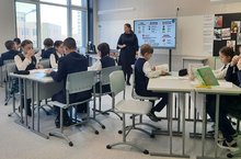 Мәктәбебезнең татар теле һәм әдәбияты укытучысы Гурьева Ләйсән Сөләйман кызы "Ел укытучысы -2023" бәйгесенең "Иң яхшы туган тел укытучысы" номинациясендә "Адымнар - Түбән Кама" мәктәбенең укучылары белән "Сыйфат дәрәҗәләре" темасына ачык дәрес күрсәтте.