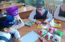 Укучылар татар милли киеменең аерылгысыз өлеше булып саналган түбәтәй һәм калфак белән якынрак таныштылыр. Аларның үзләренә генә хас булган нәфис бизәлеше, тегелеше турында сөйләштеләр. Милли уеннарга да тукталдылар. Бергәләп “Түбәтәй” уенын уйнап алдылар. Дәрес-уен күңелле һәм җанлы үтте.