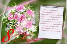 С праздником весны, очарования, красоты и женственности! Пусть каждый день будет таким, как этот: наполнен улыбками, восхищением, любовью, заботой и радостью. Будьте счастливы, ощущая себя женщинами, принцессами, королевами. С 8 Марта, милые дамы!