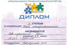 Учащийся МБОУ "СОШ №29" НМР РТ призер республиканского конкурса профессионального мастерства "Юный профессионал".