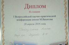 20 нче мартта Яр Чаллы шәһәрендә үткәрелгән Мулланур Вахитов исемендәге I Бөтенрәсәй фәнни-гамәли конференциясендә 7 нче б сыйныфы укучысы Гайнуллина Алинә (җитәкчесе: Якупова В.Б.) призлы урынга лаек булды.