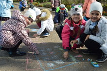 Сегодня в школе прошел конкурс рисунков на асфальте на тему "Мой любимый город" среди 1 классов.