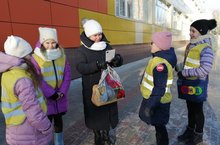Отряд Юных инспекторов движения поздравил мам города с Международным Днем матери.