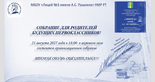 Муниципальное бюджетное общеобразовательное учреждение «Лицей №3 имени А.С. Пушкина» Нижнекамского муниципального района Республики Татарстан / Татарстан Республикасы Түбән Кама муниципаль районы «А.С.Пушкин исемендәге 3 нче лицей» муниципаль бюджет гомуми белем бирү учреждениесе