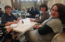 Классные руководители 7-х классов - Хоснуллина Р.Д., Белоногова С.А., Галкина Ф.Д. приняли участие в командной интеллектуальной игре "Что? Где? Когда?", которая проходила на базе Центра молодежных инициатив "Ковер".