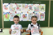 Учащиеся 1-4 классов приняли участие в акции "Дорога для жизни". Ребята оформили выставку рисунков, посвященную Неделе безопасности дорожного движения.