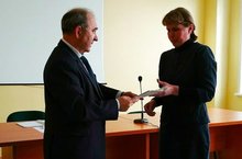 Вручение грамоты УО Кудряшовой Т.М. на планерке 11.04.2018