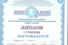 Участие наших детей в IX Республиканском конкурсе исследовательских работ и проектов школьников "Дебют в науке" 26.02.2018