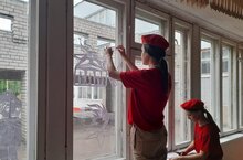 Отряд Юнармейцев им. Героя Советского Союза С.В. Давыдова приступили к оформлению школы к самому важному празднику - Дню Победы. Оформляем окна - участвуем во Всероссийской акции «Окно Победы».