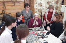 В школьном музее состоялось очередное заседание круглого стола. На встречу с краеведами приехала руководитель мастерской традиционного костюма из Казани Ахметзянова Юлия Владимировна, которая в настоящее время в рамках большого Республиканского проекта занимается реконструкцией кряшенского костюма. Юлия Владимировна давно наблюдает за деятельностью краеведческого сообщества нашей школы и за нашей дружбой с хранительницей культуры кряшен Стрелковой Е.К. Костюмный комплекс, который хранится у Екатерины Николаевны в личном архиве станет прототипом для проекта Казанской мастерицы.