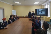 Отряд Юнармейцев им. Героя Советского Союза Давыдова С.В. приняли активное участие в беседе, выступили с докладами, посетили экскурсию в зале Боевой Славы.