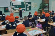 Учитель начальной школы высшей квалификационной категории Мингазова Р.Г. представила своим коллегам урок обучения грамоте в 1 «В» классе.
