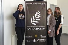 Активисты волонтерского штаба "Добрые дела" Мурадымова Зарина, Давыдова Анастасия и Бадгиева Василя проходят обучение по дополнительной образовательной программе Всероссийского проекта "Карта добра". Форум проводится в ВДЦ "Смена" /Анапа, п.Сукко