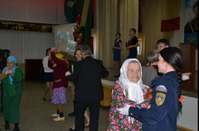 На первом этаже ветеранов встретил живой коридор из учащихся, дети провожали гостей в актовый зал. Обучающиеся школы показали виновникам торжества концерт, на военную тематику, ветераны сами принимали участие на концерте: пели и танцевали вместе с учащимися.