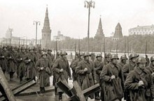 Битва за Москву (Московская битва, Битва под Москвой, нем. Schlacht um Moskau; 30 сентября 1941 — 20 апреля 1942) — боевые действия советских и немецких войск на московском направлении. Делится на 2 периода: оборонительный (30 сентября — 4 декабря 1941) и наступательный, который состоит из 2 этапов: контрнаступления (5-6 декабря 1941 — 7-8 января 1942) и общего наступления советских войск (7-10 января —20 апреля 1942).