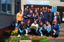 Совместная работа с шефами ПАО "НКНХ". Посадка цветов на территории нашей школы. 22.05.2019