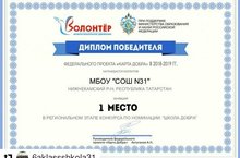 Проект "Добрые дела" - победитель регионального этапа Федерального проекта "Карта добра" в номинации "Школа добра". 18.03.2019