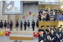 Обучающиеся нашей школы в составе отряда "Юнармия" встречают гостей и провожают их в актовый зал на концерт! 01.10.2018