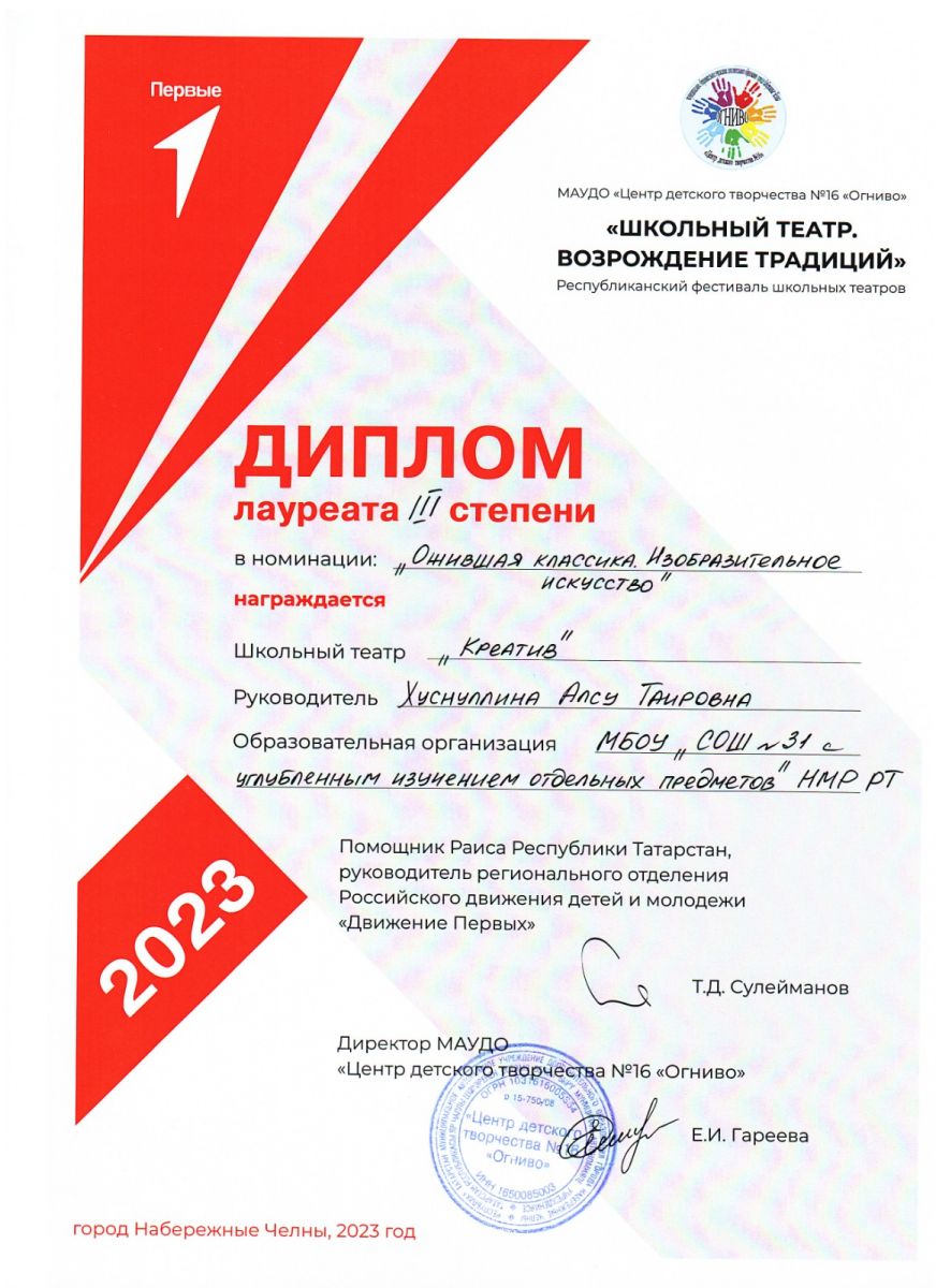 | Короткое название: | МБОУ "Лицей №31 имени А.А. Шаповалова" НМР РТ |