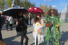16 октября в городском парке "Семья" прошел "Праздник дождя", в котором участвовали школы и сады города. Наша школа также приняла участие в этом празднике. Ребята из школьного совета старшеклассников решили оригинально украсить зонтики. Первый зонт посвятили году Кино, поэтому украсили его кинолентой, кадрами из отечественных фильмов и камерой. Второй зонт украсили в виде гриба.