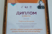 4 Б сыйныфы укучысы Сафонов Вячеславны "Яттан сөйлә Тукай шигырьләрен, шушы булыр иң зур бүләгең" бәйгесендә 1 урын алуы белән котлыйбыз.