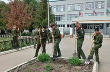 В рамках санитарно-экологического двухмесячника, стартовавшего в Республике Татарстан, учащиеся 9-го класса приняли участие в благоустройстве пришкольной территории. Ребята вскопали газоны.