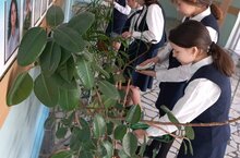 Учащиеся 4в класса на экологическом кружке "Друзья природы" не только получают знания, но и применяют их на практике - с удовольствием ухаживают за растениями в школе...
