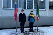 Сегодня право поднять флаги Российской Федерации и Республики Татарстан предоставляется учащимся 9А класса — Миликову Азату и Миннеханову Малику!