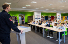 Сегодня у наших второклассников прошел урок хоккея.А провели его спортивный комментатор Эльмар Абдуллин, легионер «Нефтехимика» Лукаш Клок, талисман наших хоккеистов Волк и группа поддержки нашей команды.