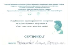 Учитель математики Дорофеева Лилия Ильинична приняла участие в Республиканской научно-практической конференции им. педагога-гуманиста Ащеуловой В.И. "Через слово и дело - к разуму и сердцу". Был представлен опыт работы педагога по теме "Нестандартные приёмы обучения математики". Конференция прошла на базе школы №2 города Нижнекамска.