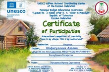 Ученицы 5А класса, воспитанницы ДТДиМ им. И.Х. Садыкова, детского объединения "Волшебная косточка" Шафигуллина Азалия и Глухарева Анна получили сертификаты участников Международного конкурса "Вот моя деревня, вот мой край родной". Также в этом конкурсе принял участие и стал победителем в номинации "Фотография" выпускник нашей школы, студент колледжа нефтехимии и нефтепереработки имени Н.В. Леваева Глухарев Никита.