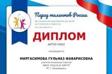 Поздравляем учителя начальных классов Миргасимову Гульназ Фаварисовну, занявшую II место в Международном дистанционном конкурсе "Педагог - моя профессия и призвание!".